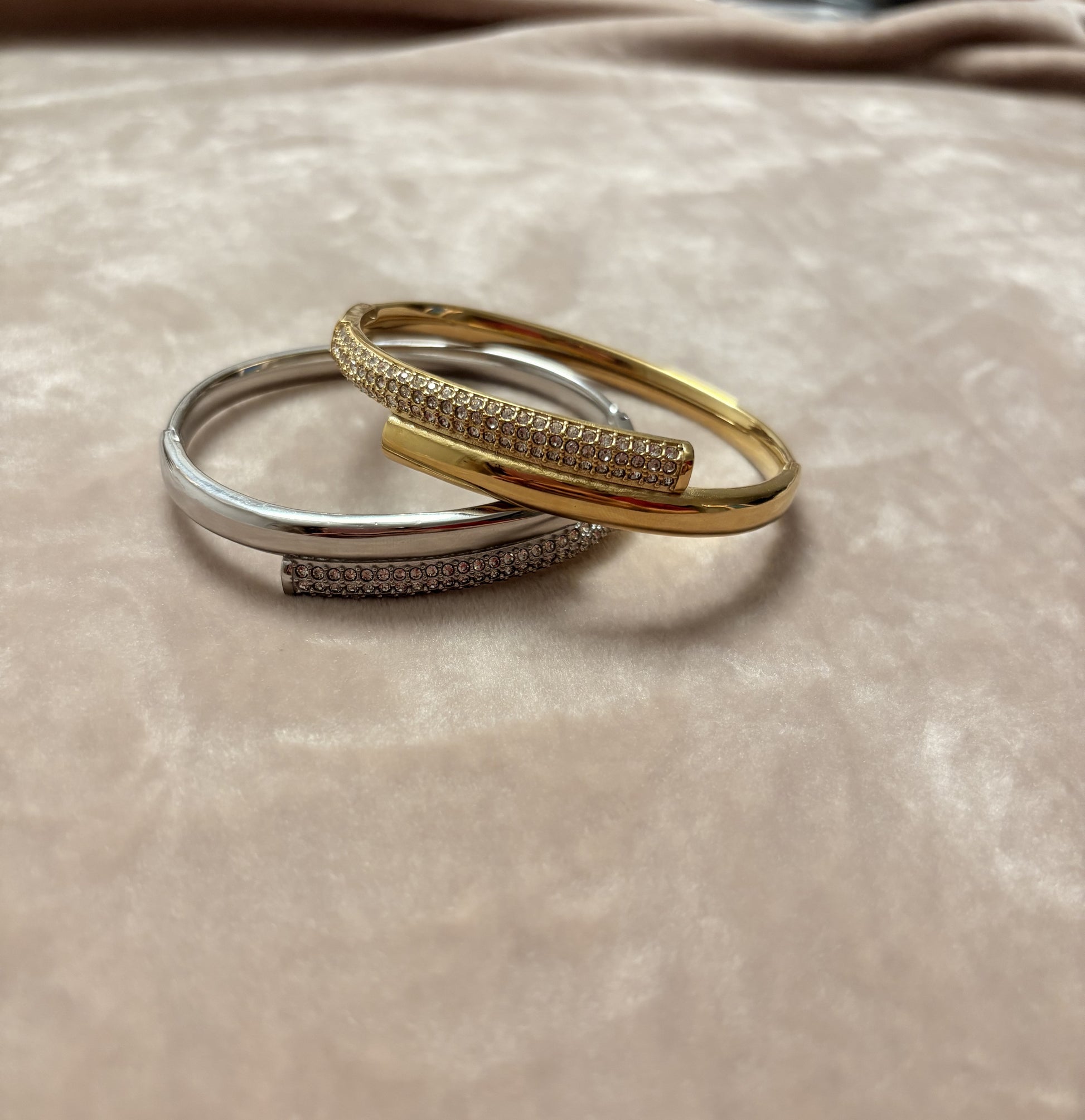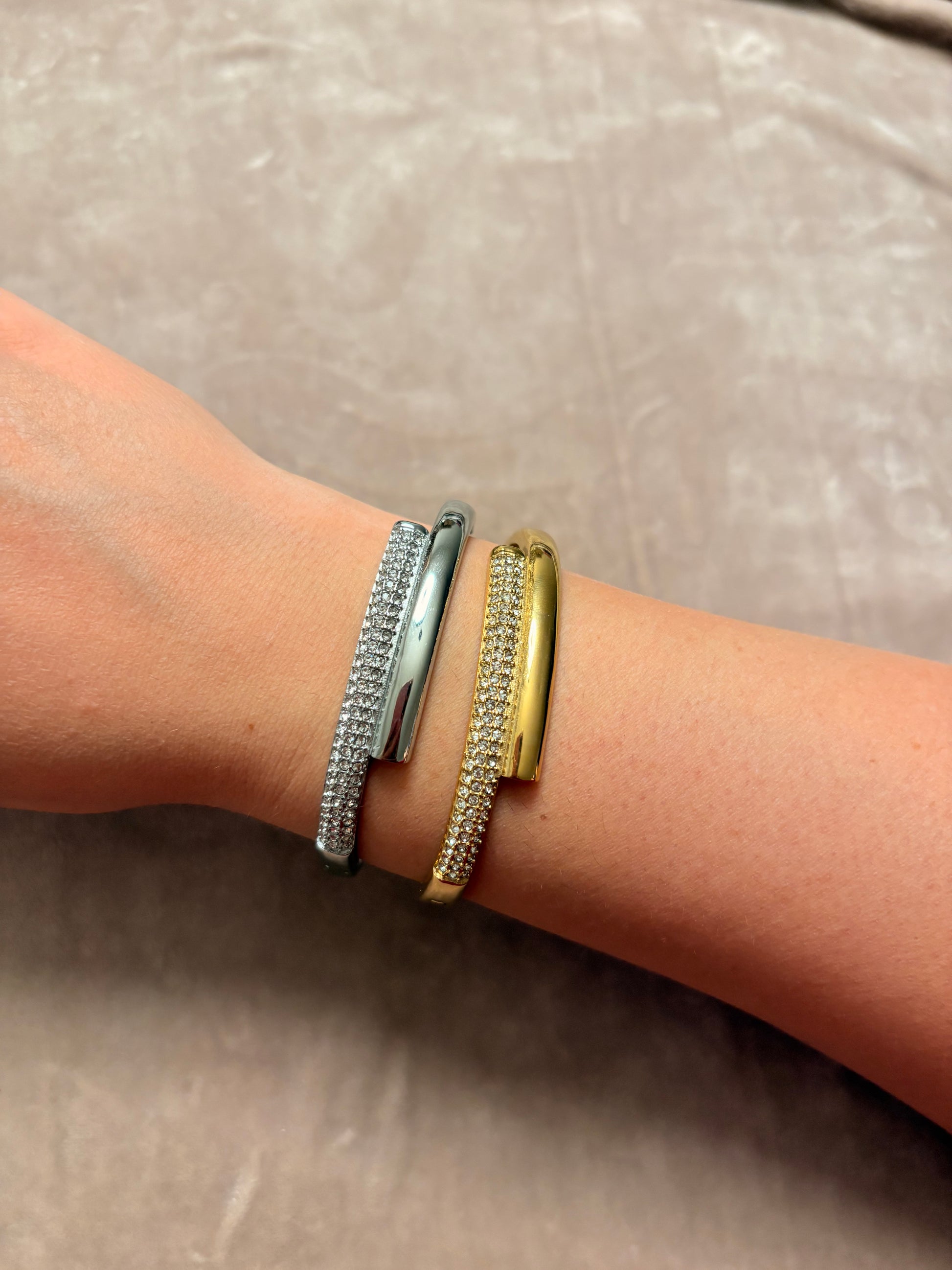 De strakke, glanzende band, met of zonder strass, geeft jouw pols instant effortless luxe, zelfs wanneer jij persoonlijk nog maar net aan het meehangen bent.