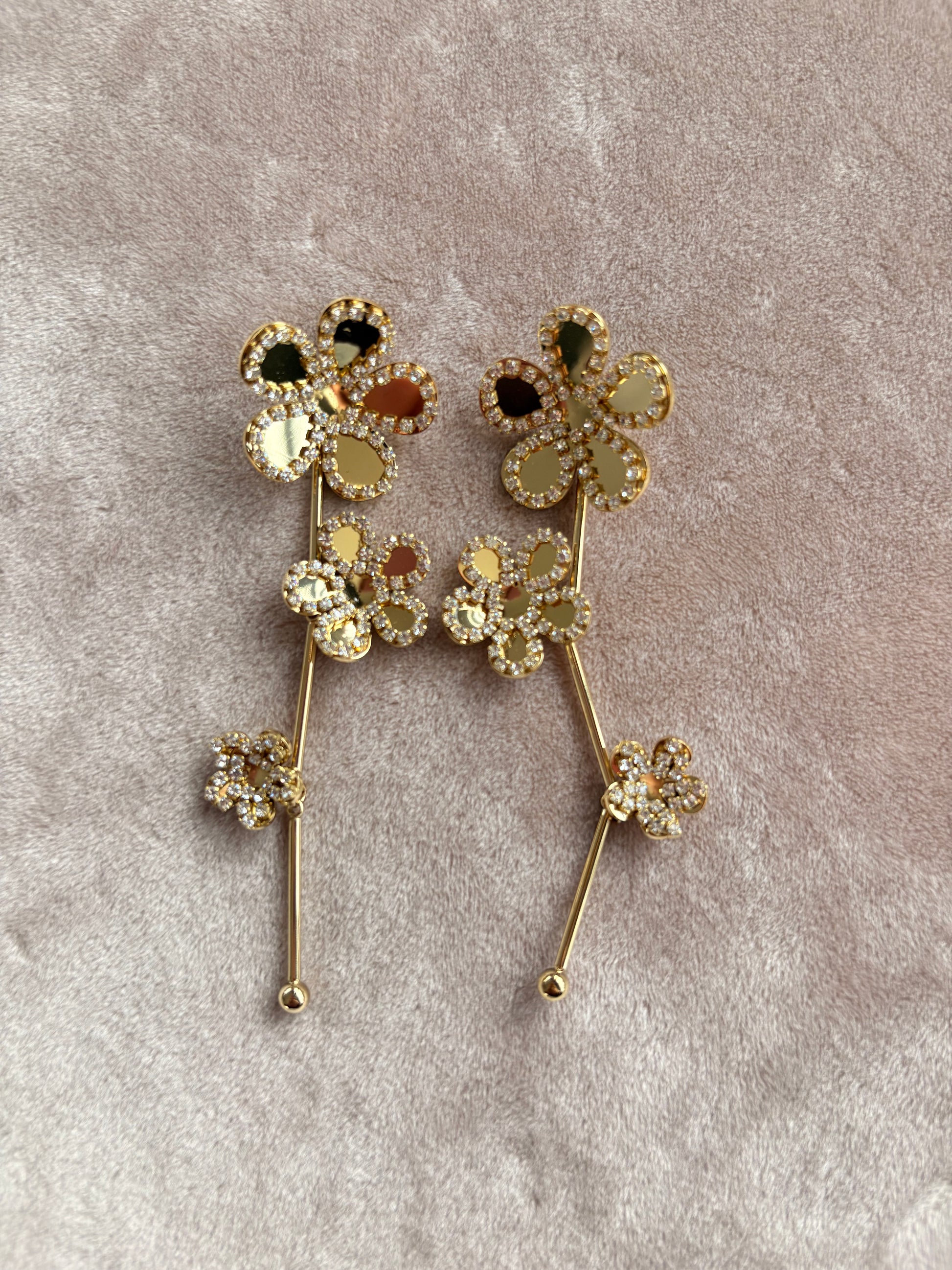 💖 Details: Oorbellen met glinsterende bloemen en lange steeltjes