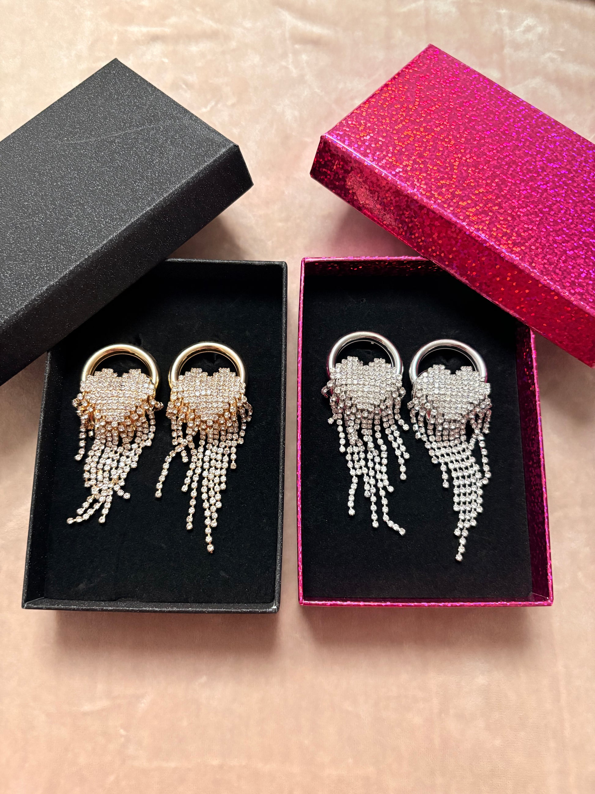 💖 Details: Lange oorbellen met multiple strass waterval-strengen